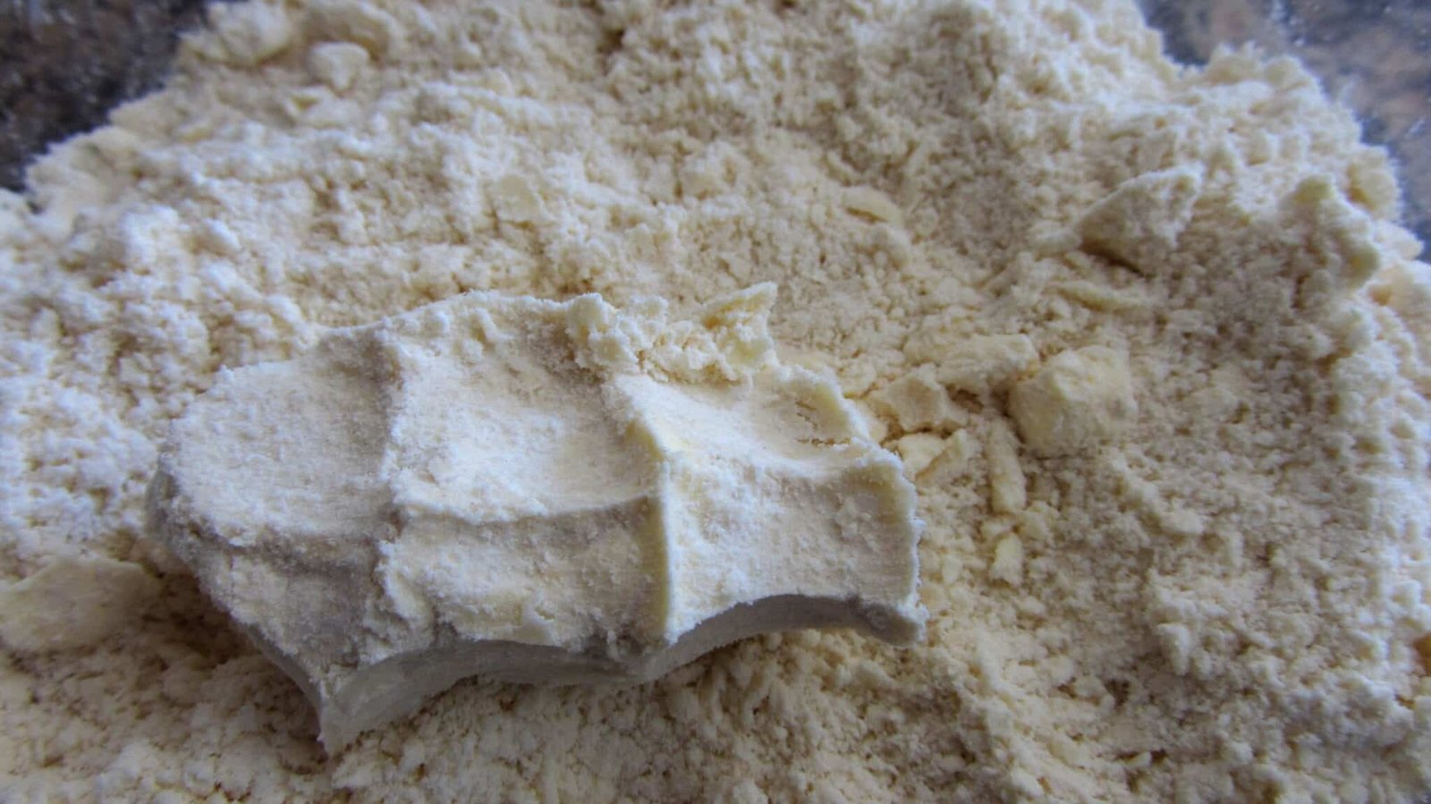 - At this point, I like to add about 1 or 2 tablespoons extra of cold Butter, but don’t smush it completely in. Keep it in little bits and chunks so that when it bakes, the crust has this little flaky pockets of buttery goodness. If I did use shortening, this is where I would use it.