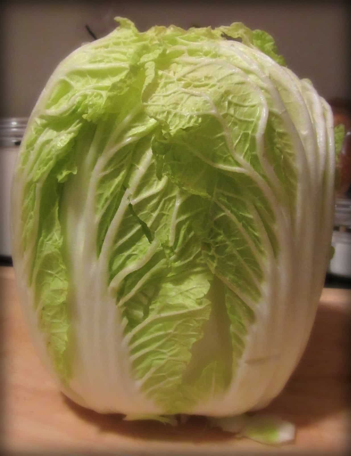 If you’ve never heard of or seen Nappa Cabbage, you can find it in most produce departments, and it looks like this: