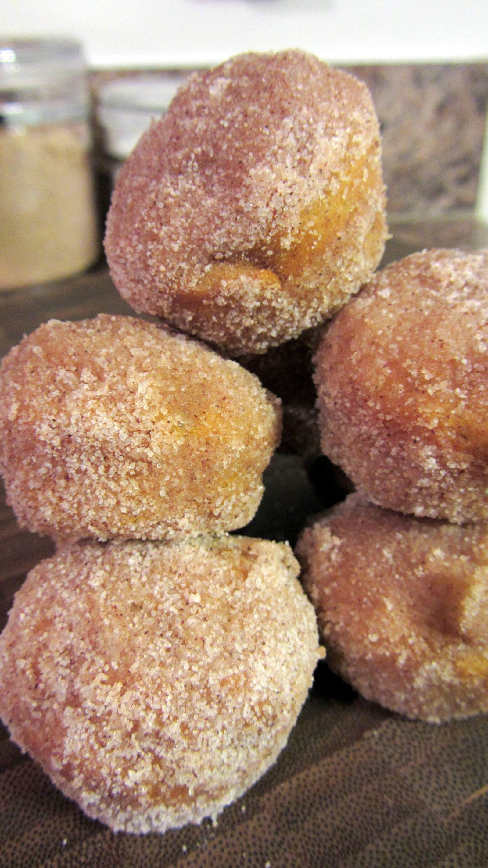 Anyway, what are these things? Muffins? Doughnut holes? Well, I think it depends. I did them a few ways and one way, I’d definitely call them doughnut holes, but in the other they’re closer to muffins. But for arguments sake, I’ll just refer to them as doughnut holes from now on.
