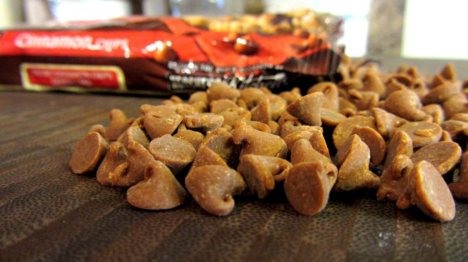 - Coarsely chop the cinnamon chips as best you can. You don’t need to chop them all, but at least half would be nice. If you leave them whole, when you go to cut the cookies later, it can rip the dough apart. Yeah, it’s easy to put back together, but still, do what I say, ok? Ok. You don’t want big chips everywhere anyway. You want little chunks here and there, don’t you? Alright then,