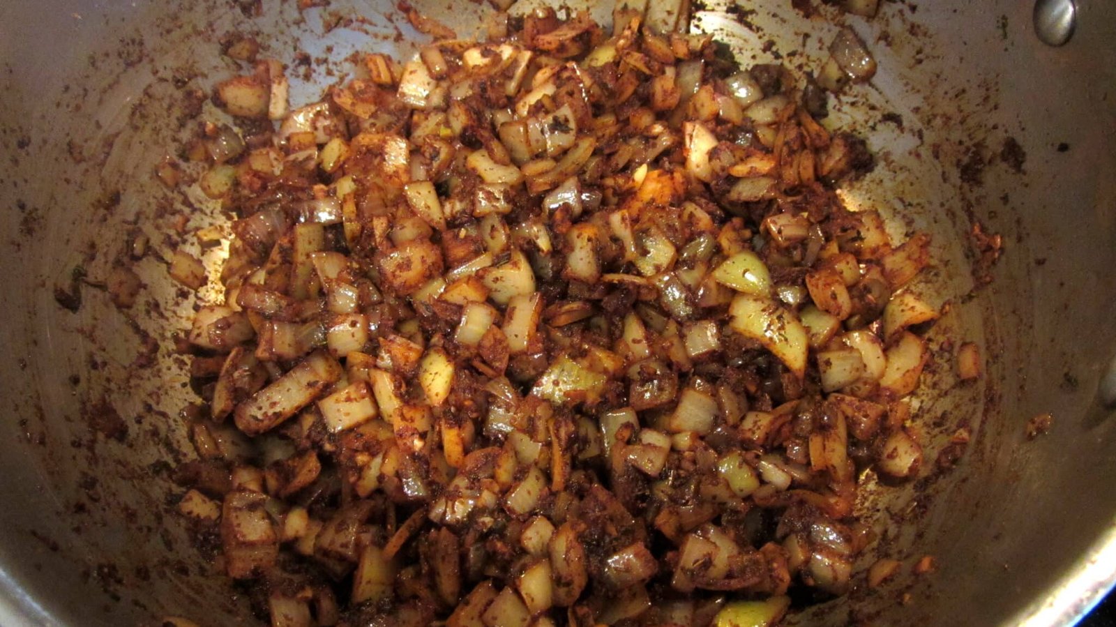 - And the fun is over. Now you wait. Put the temperature down to a light simmer for a whole hour and a half! Check it out once in a while and stir it around. I leave mine uncovered, but if you find it splashing around everywhere just take a piece of aluminum foil and place it on top of the pot. Don’t crumple it around, just lay it on top.