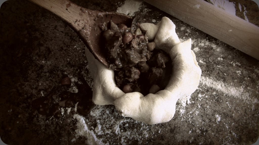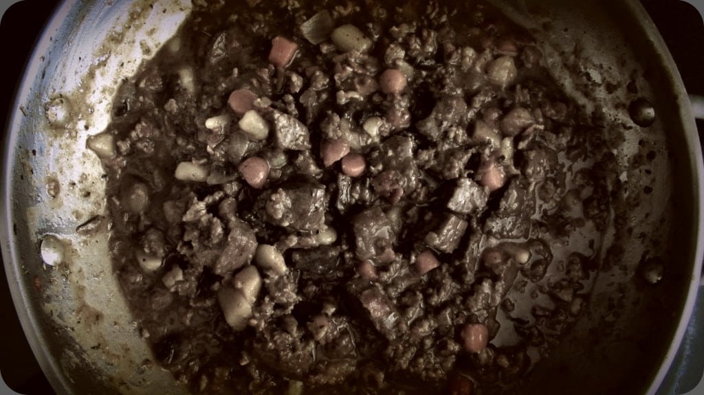 She ran through everything in the ingredients list minus what I was waiting to hear.. – “So what types and cuts of meat do you use?” – I had to force out, trying to not sound pushy about what I was absolutely dying to know. And after a slight pause both Mrs. Lovett and Mr. Todd said simultaneously – “vealnison” – I heard, as they gave each other conflicting looks. Mrs. Lovett clarified “sometimes it’s veal, sometimes it’s venison, sometimes it’s a little bit of both. But if you can’t get a hold of either then beef and sausage with some bacon will do fine.” A slight smile and half a nod from Mr. Todd convinced me of his approval and I was happy with that.