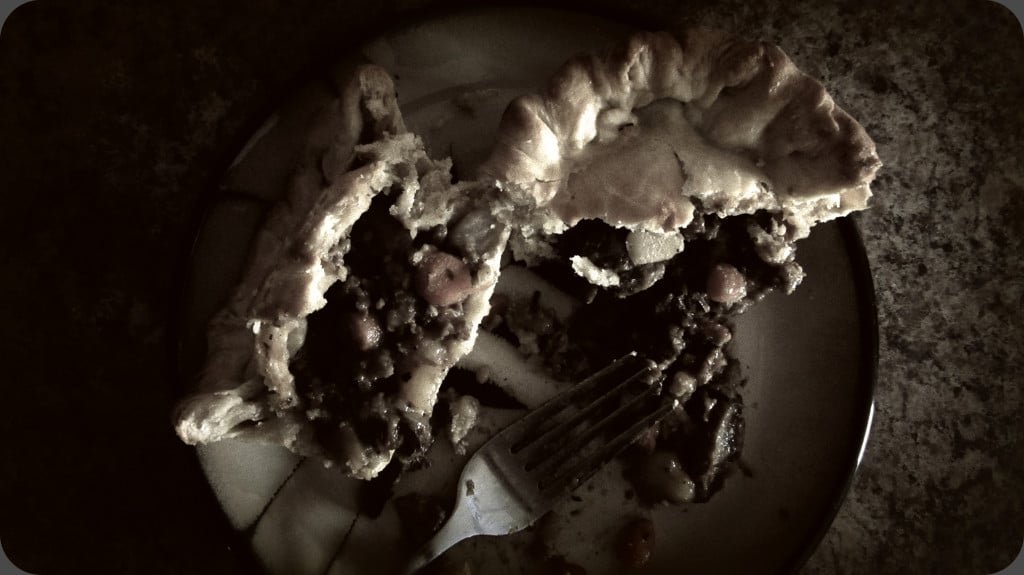 Sadly.. I have to admit.. While this pie is great, and I mean great.. it’s nowhere near as indescribable as Mrs. Lovett’s. I’m not sure if she left out an ingredient or her secret really is in her special meats. I tried going back after I made it just to make sure I wrote down everything, but the shop was strangely closed with neither Mrs. Lovett or Mr. Todd in sight. I’m sure by the time of this article being published you’ll be able to visit it again. But until that time one thing is for sure – this recipe will curb that need for one of Mrs. Lovett’s world famous pies until the next time you can make it to her shop on Fleet Street.