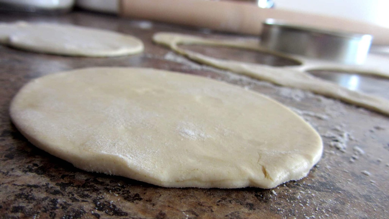 - Now that you have the sauce, get your dough and roll it out the same way you would if it was for a regular pie, about 1/4 inch thick. Cut them (into whatever shape you want), but the diameter should be at least 4 inches.