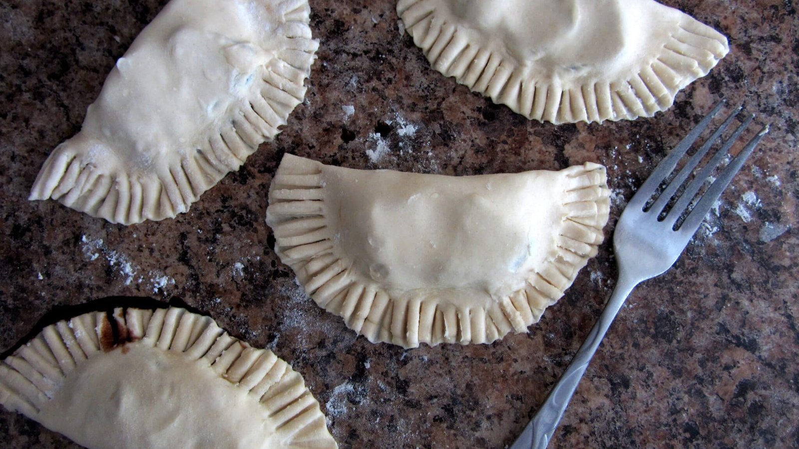 - To close the pie, take some water on your finger and wet the edge of one half of the dough, then seal the dry edge over the wet edge. The water is going to help it stick together and seal. You can also close it up anyway you want. I used a fork to press down on the edges like a traditional empanada, but you could could just roll it up, fold it over itself, whatever you want.