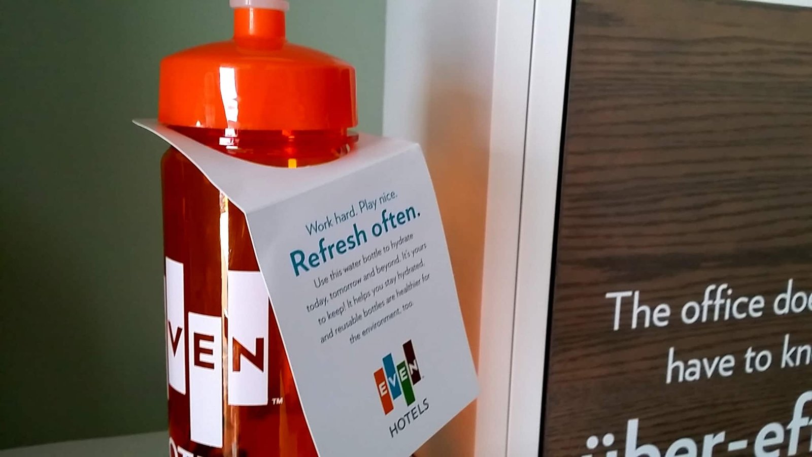 - Among other small things, all the noticeable amenities that made it a fitness/wellness hotel took nothing away. Great things to have if that’s what you’re there for, but we just didn’t use them. Well, Seb was rolling around on the exercise ball like he was trying out for the circus, but I don’t think that counts. Overall, I’m making jokes, but it was a really great stay and we would probably stay there again. The staff was insanely friendly and helpful, everything was clean, towels were so soft they felt like they were layered with lotion the way puff pastry dough is layered with butter, it was just plain ol’ enjoyable all the way around. Good job, Even Hotels! You make me want to layer my towels with