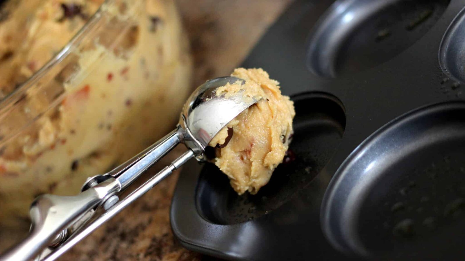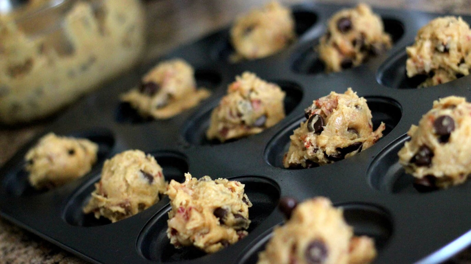 - Get your whoopie pie pan and spray it. Then add about a tablespoon of dough to each cavity.