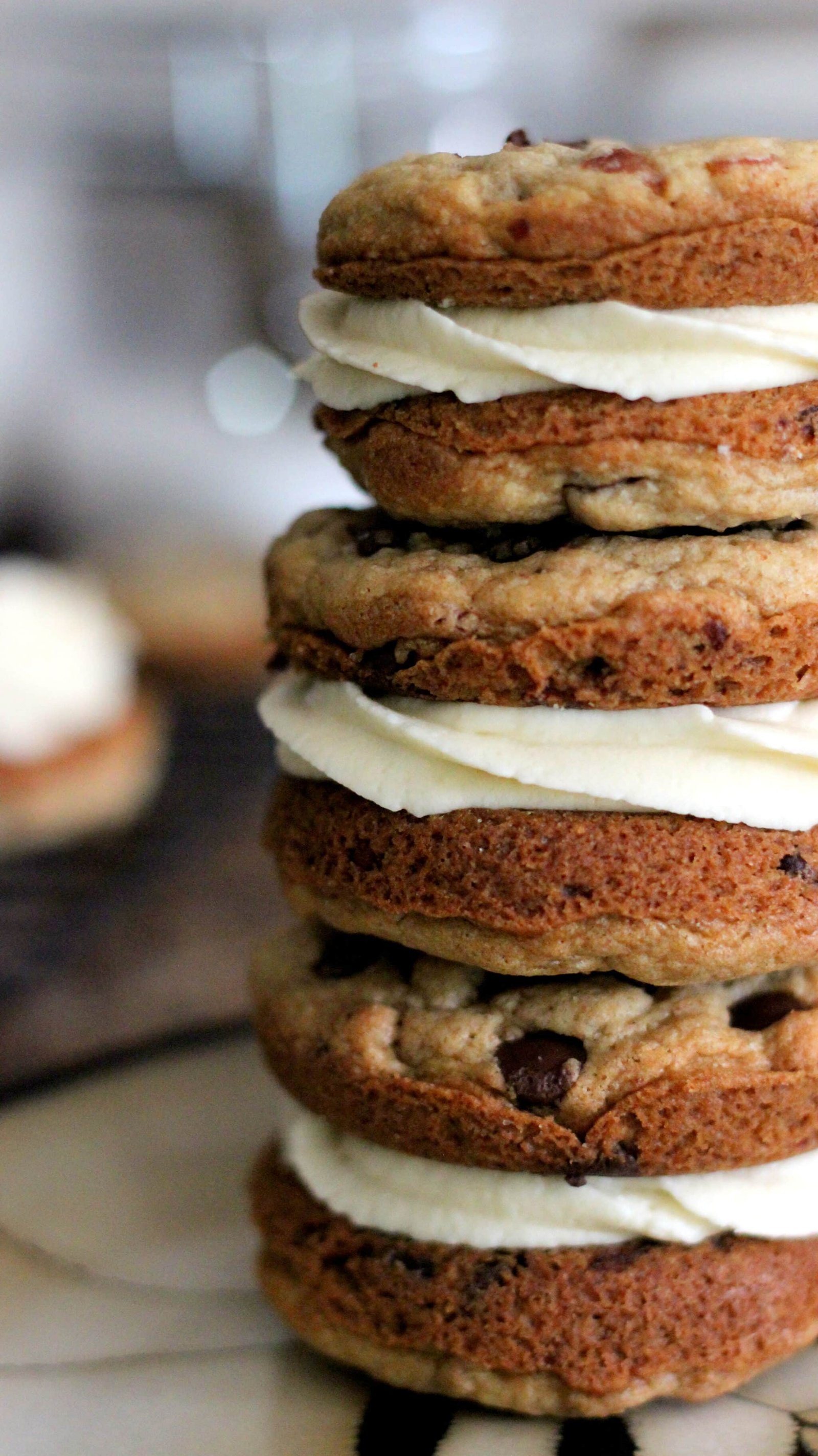 Bacon Chocolate Chip Sandwich Cookies with Maple Buttercream Frosting