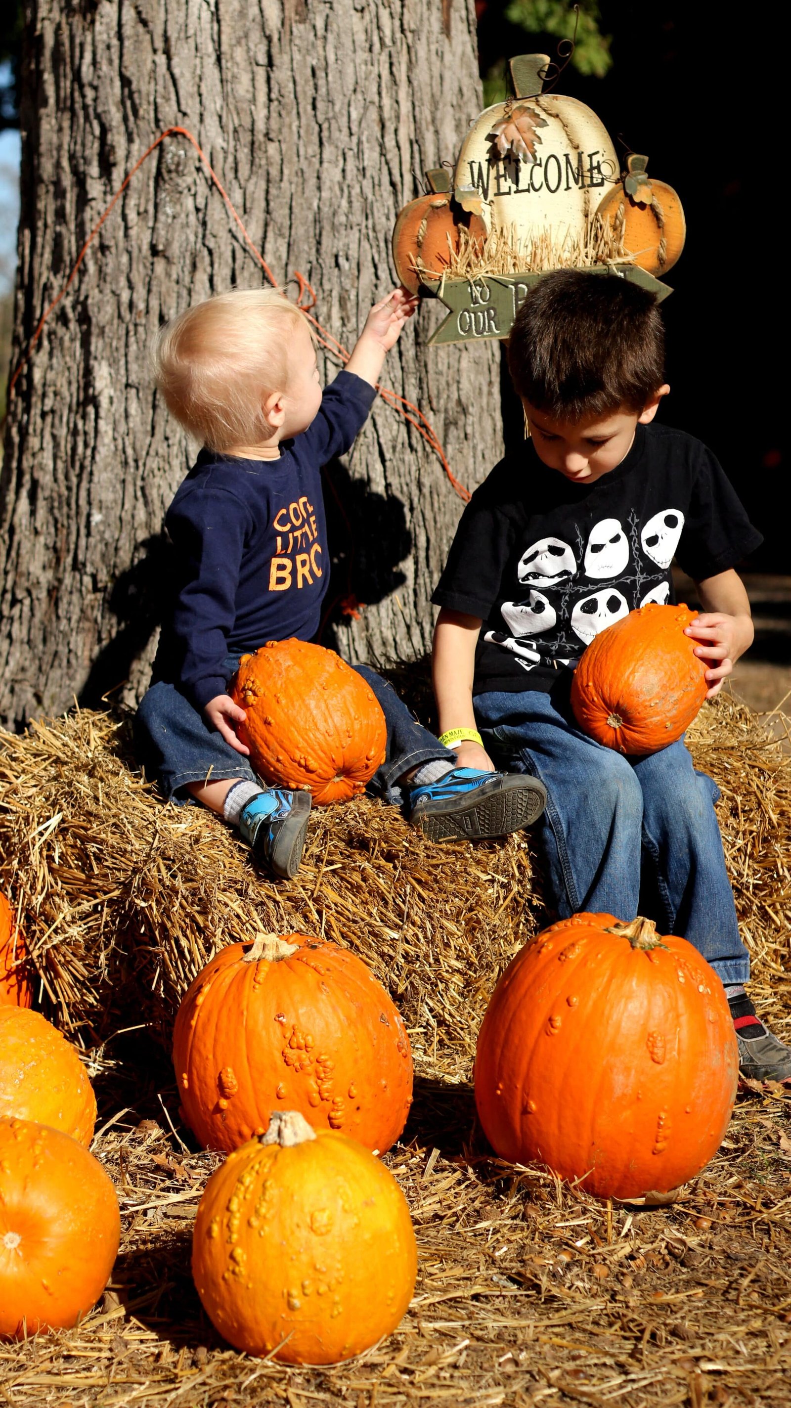 Oh my gosh, I am such a sucker for the kid pics.I don’t know what I like better–Lucas pushing his brother away, or that rad Jack Skellington shirt. Aaaahhhh Halloween is the best! Happy Halloween to your family! 🙂
