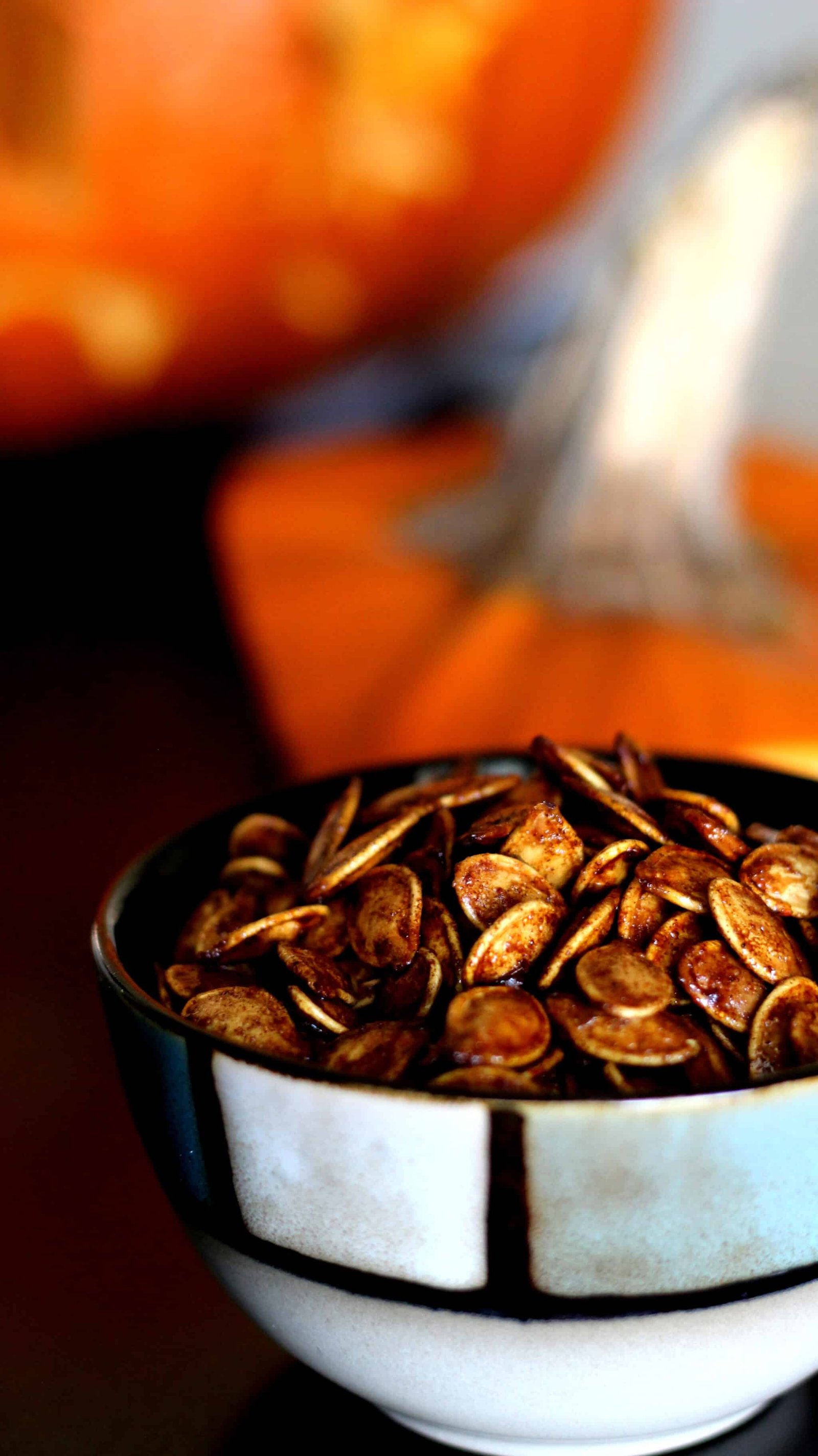 It was 2 whole years ago (yikes) when we not only carved our first pumpkin, but I roasted seeds for the first time. If you go back and read that post by clicking here – which you should since it’s a great recipe and has more info on roasting – you’ll see I attempted and failed miserably (I’ll never forget that heartache) to make the seeds I’m sharing with you today. So it was good to read that again and feel like I won a battle I’ve lost in the past. Show me a mountain now and I shall climb it!