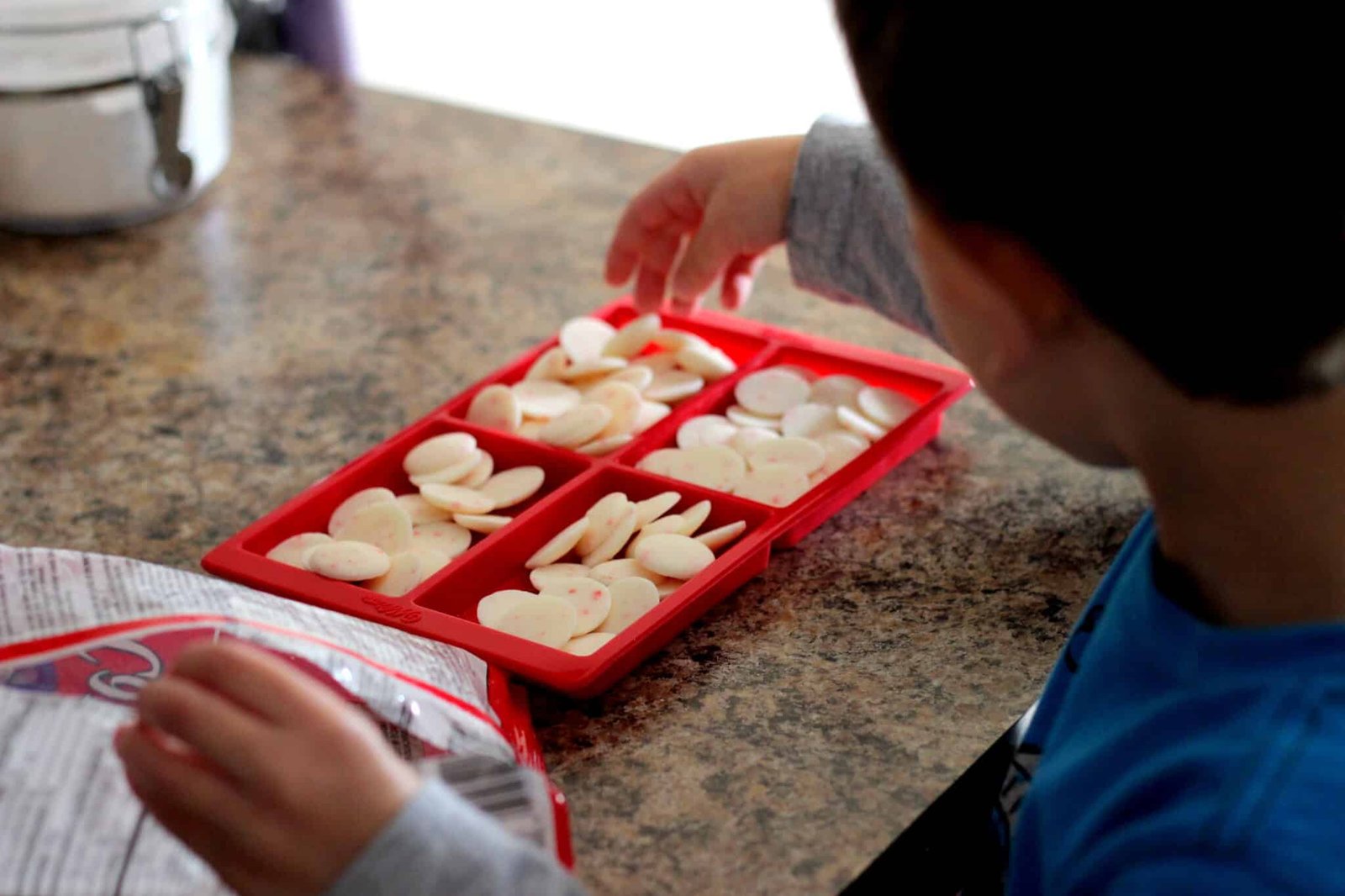 - You want to fill up the mold pretty good with at least 25-30 candy melts in each square. If you put less, the bark won’t come out as thick.