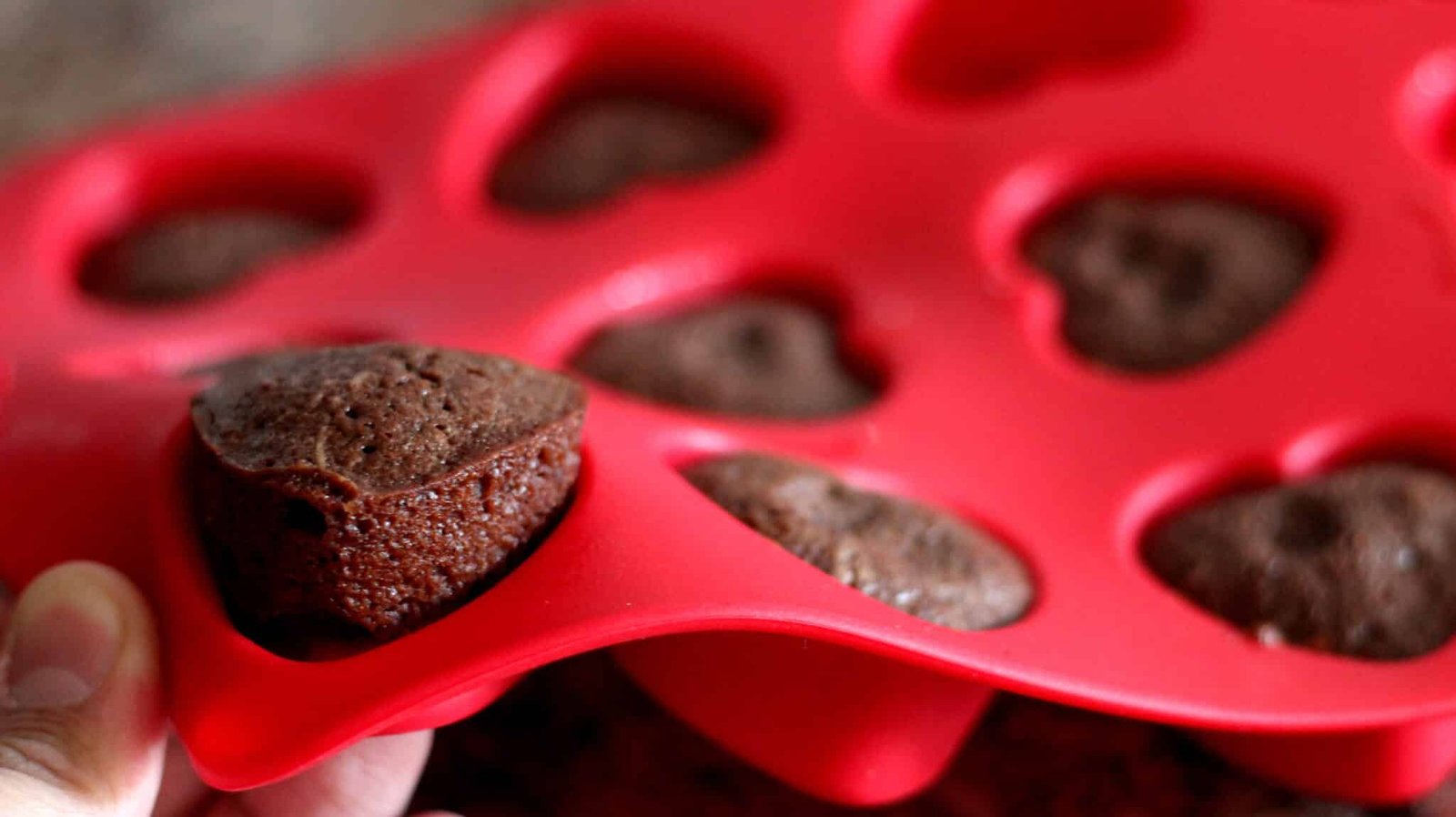 - When they’re out, let them cool for about 5 or 6 minutes then carefully push them up from the bottom and extract. And just like that, my chocolate heart is in your hand. Be gentle.