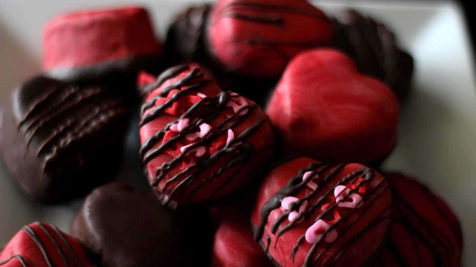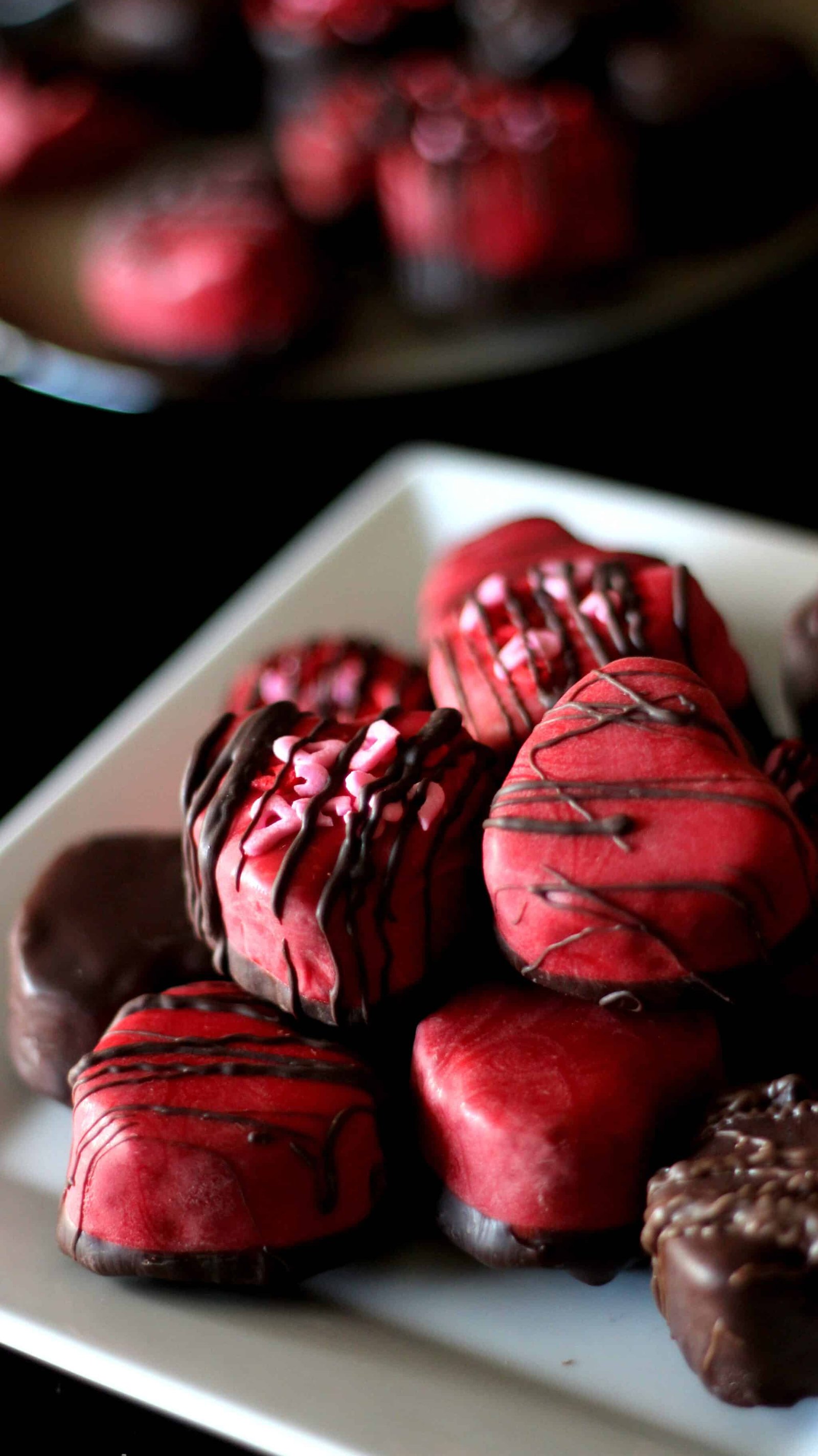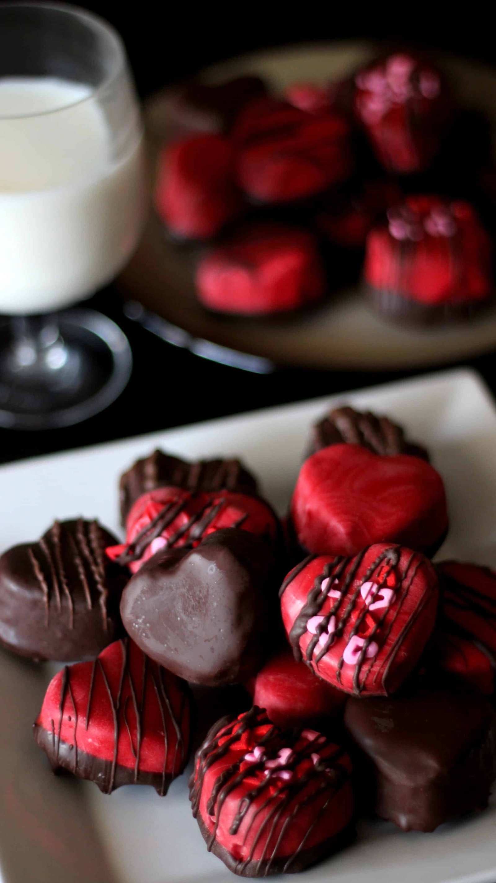If you have white chocolate, I’d imagine it’ll look real nice to drizzle some of that on top of either the red or regular chocolate hearts.