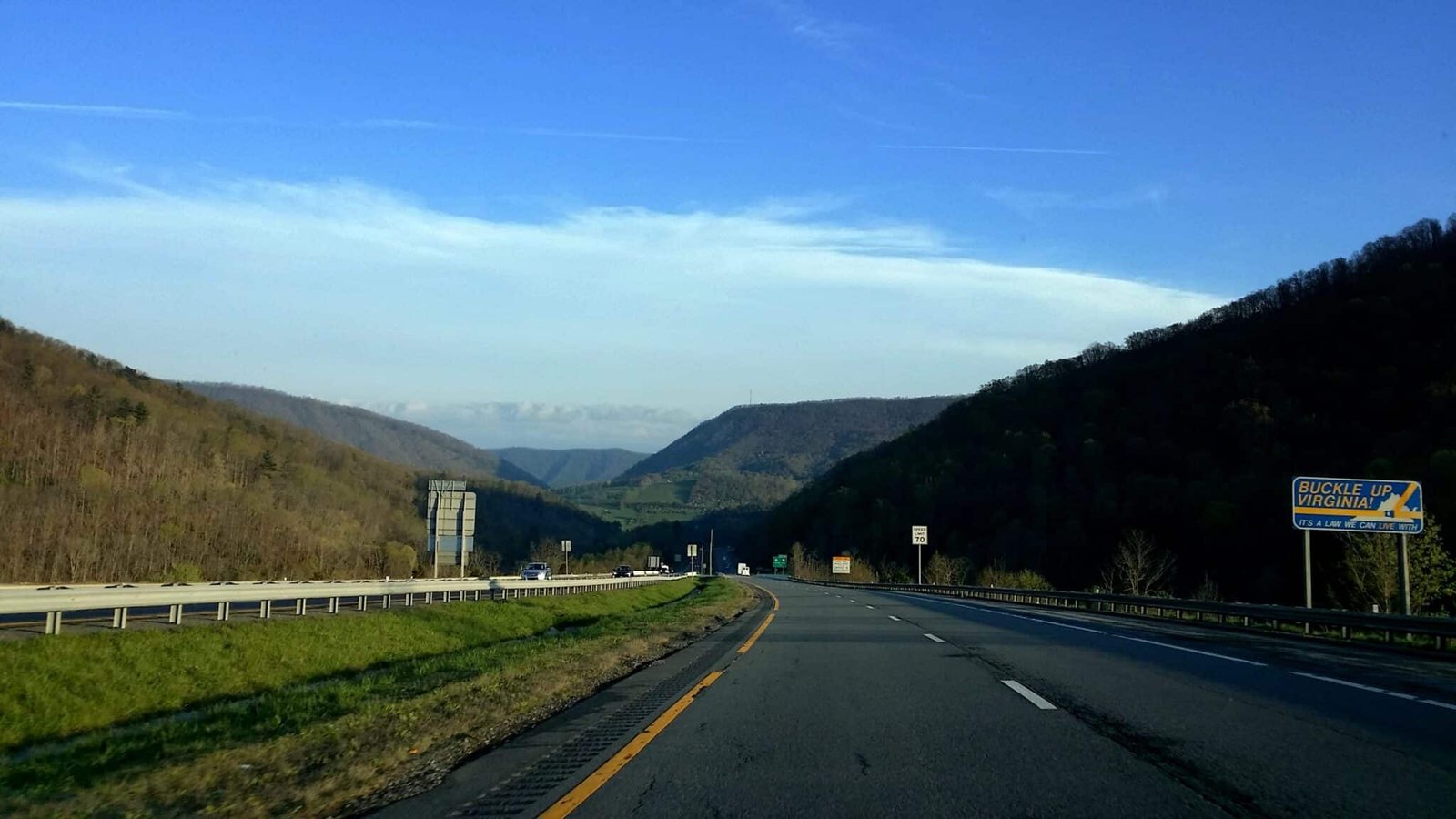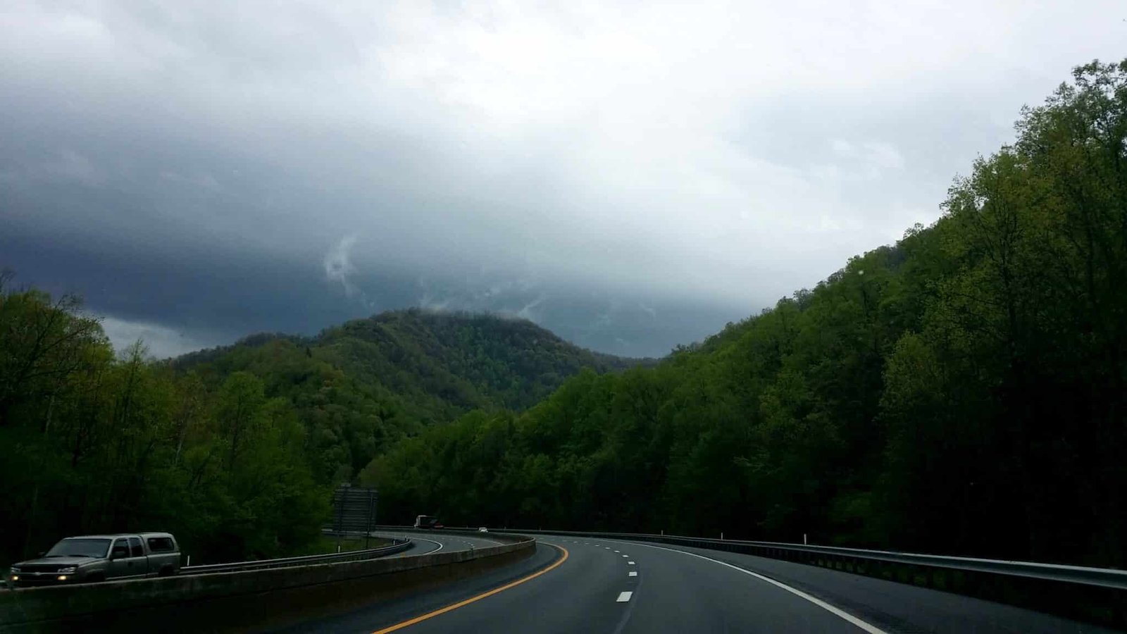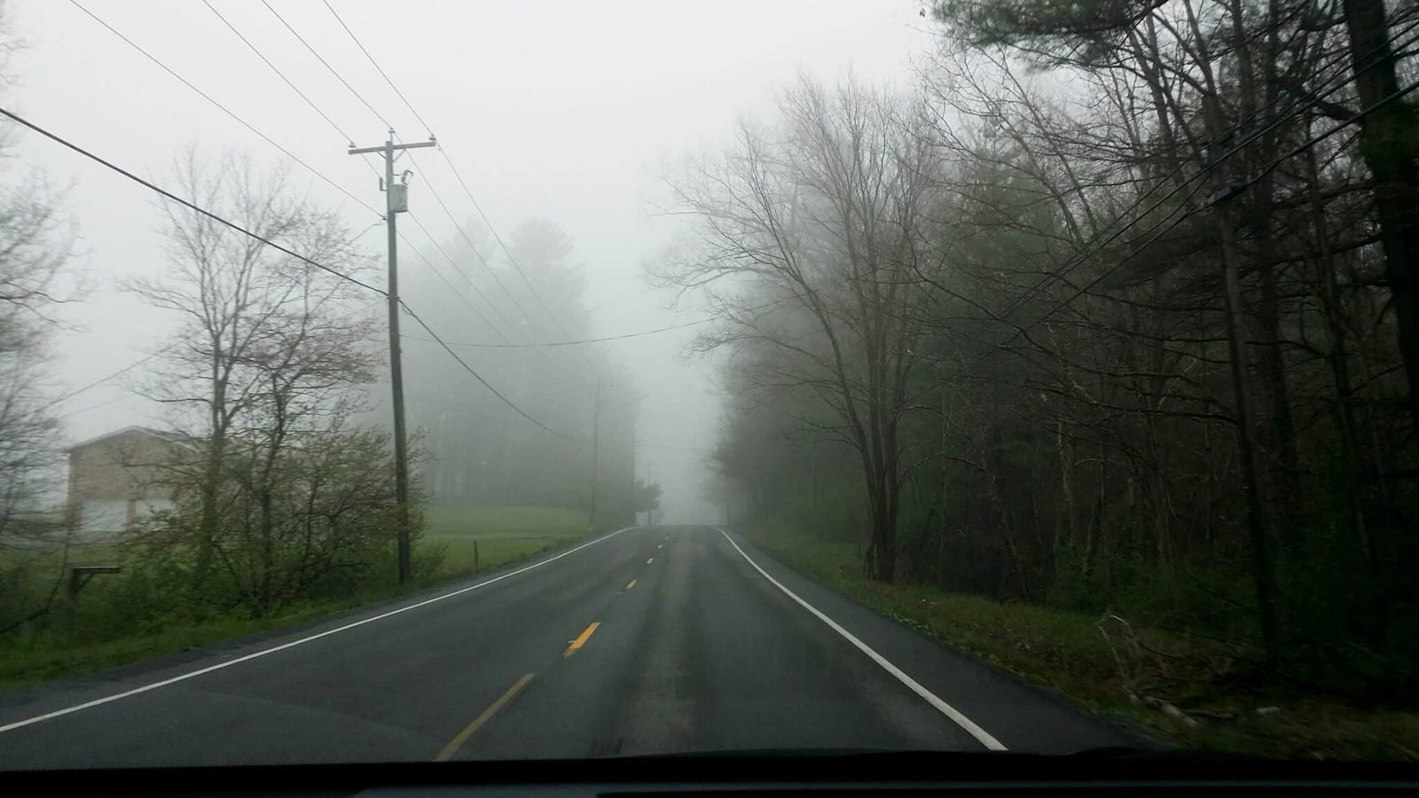 We had rain, and then crazy fog as we got out of West Virginia. You couldn’t even see the road ahead of you! The fog along with that creepy forest road, it’s almost like a sign telling me to never drive through that state again.