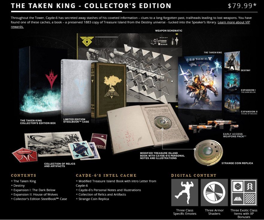 I’m sitting happy. Despite spending so much for just one game, I’m still thoroughly enjoying myself so I have no problem admitting it. Then the announcement of The Taken King comes, and with it, a Collector’s Edition. Son of a …
