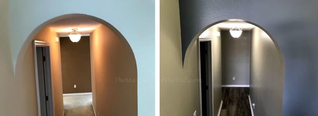 We had been living in an eggshell colored cave for two years and we were ready for a change. At one point in the color picking process I was totally fine recreating the inside of a papaya. I was just that ready for color. But we refrained and went with a grayer pallet. Like everything else, there was a lot of back and forth. The wife was ok with getting a few 5-gallon buckets and doing the entire house in one color. But I was ready, and willing to have a different color for every space WITH accent walls.