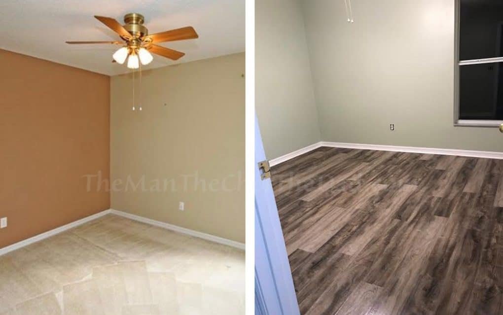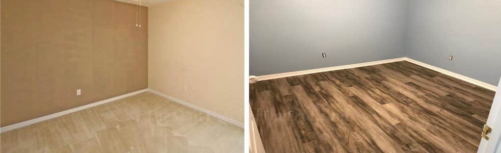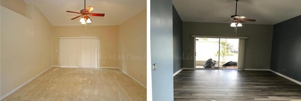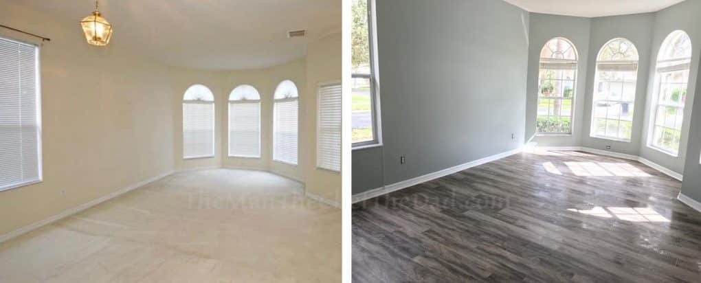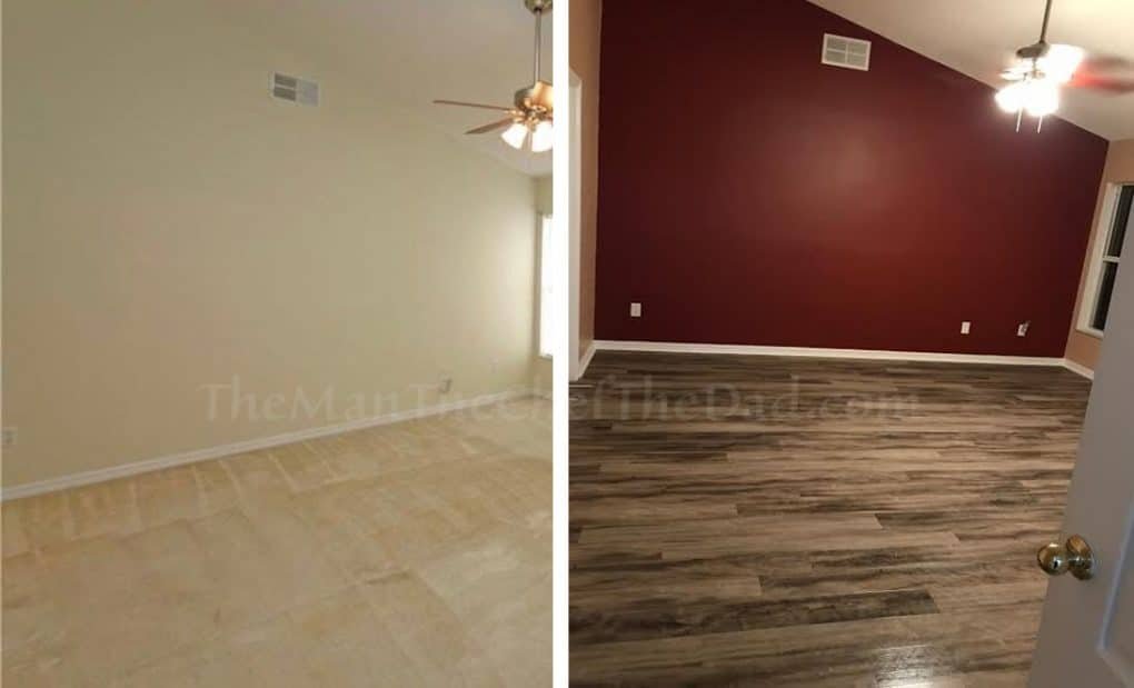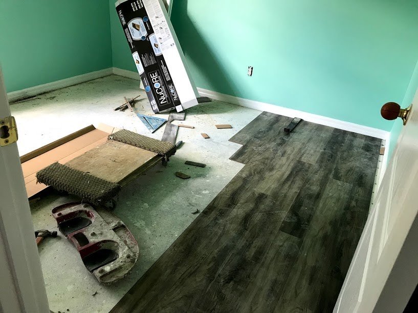 OK, now the floors. With the paint still dry, we had to get the floor dude working. Luckily my parents helped us out and paid for the floors and installation. We’ll be paying them back, but it was a necessity and the only way it was going to happen is if they paid and we paid them back. Time was not on our side and installing the floors was not going to be an easy task.