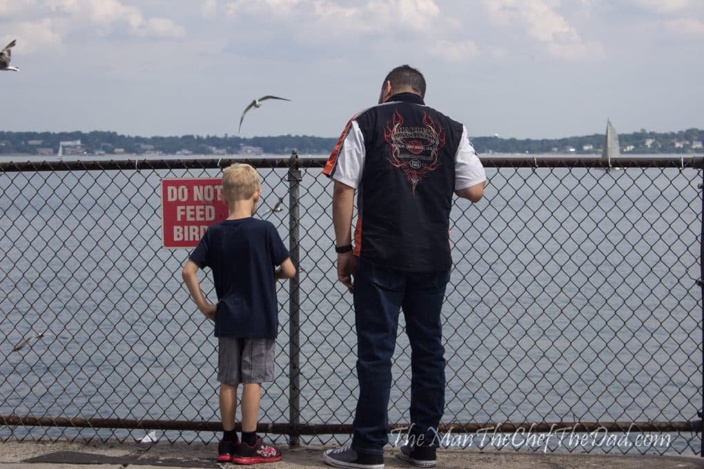 A big part of the experience is taking leftover fries – all the soggy ones that no one liked to eat – and going out to the edge of the water and feeding the seagulls.