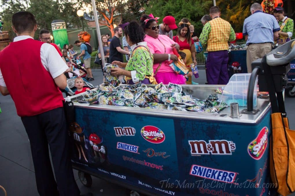 The thing with Mickey’s Not-So-Scary Halloween Party, or, MNSSHP, as I HATE to see it shortened as, is that no matter if you’re an annual passholder or not, you still have to pay extra to enter. $75 ish from the beginning of the season to $115 if you go closer to Halloween on peak nights. A few benefits: the park is open and most of the rides are as well, along with free candy for trick or treaters, which, hot dog, there’s a bunch of. Also, you get to experience a few really cool treats for the Party in the form of parades, shows, etc.. It just… ugh, it really stinks having to pay. Sorry, #passholeproblems. Still though, the event and uniqueness of the activities make it worth it, especially if you love the season.