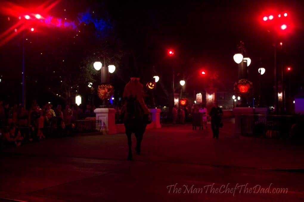 The Boo-To-You Halloween Parade is a great thing to watch as well. It is kicked off by the Headless Horseman himself riding his horse through the parade route. THAT’S a sight to see, it’s so cool.