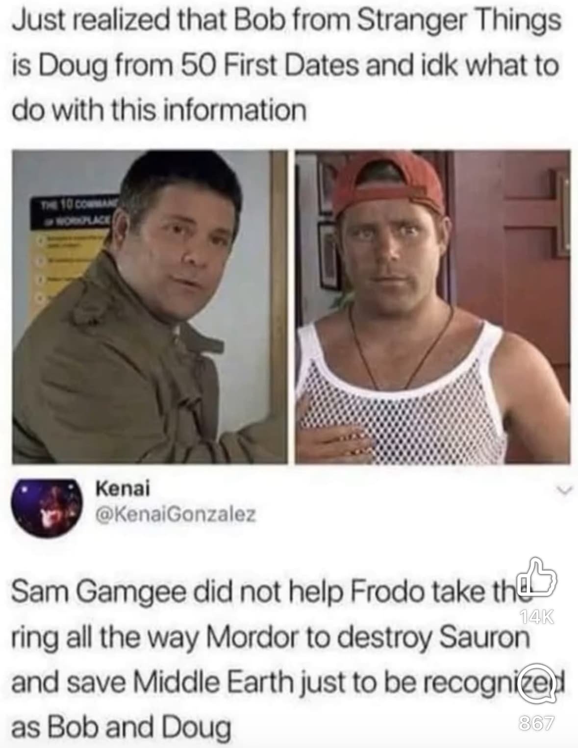 - Speaking of Lord of the Rings, I saw this meme the other day and it made me chuckle something fierce 😂