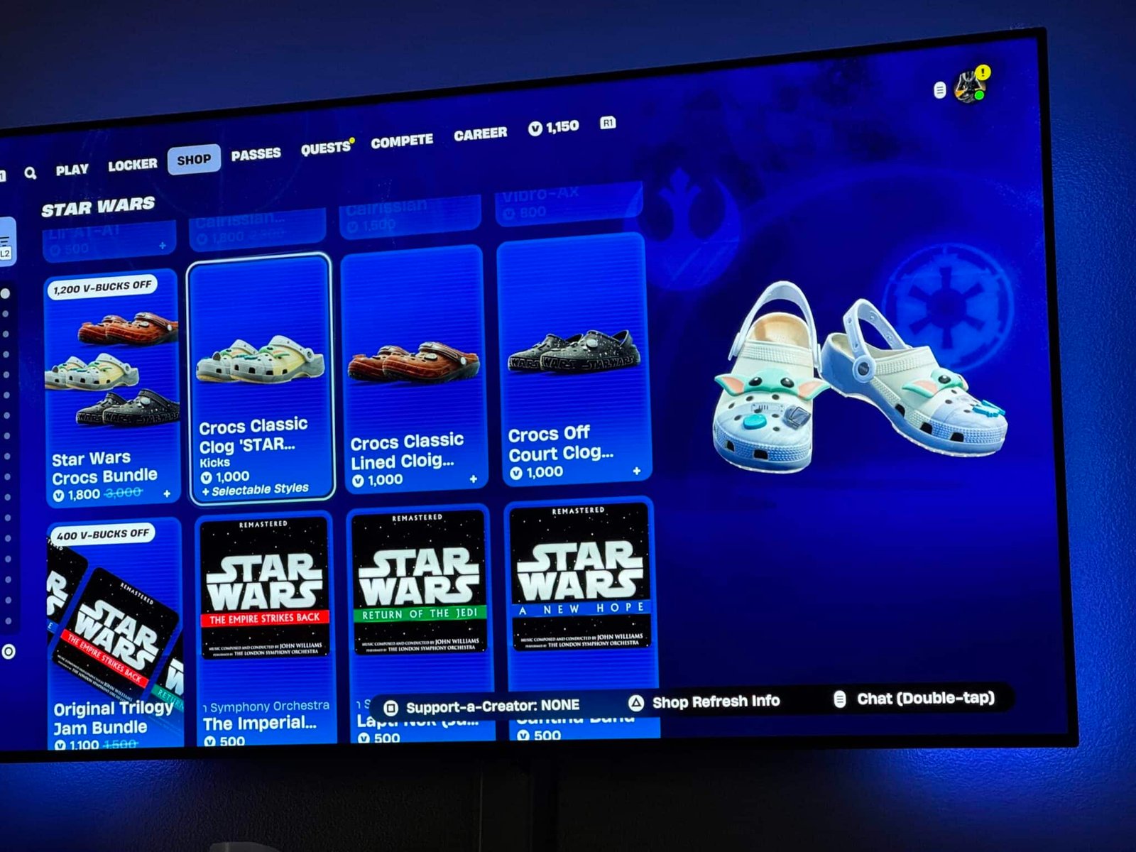 - Fortnite has crocs now. I haven’t played fortnite in about 3 seasons. I think this is the longest I’ve gone without playing it at all. But i turned it on to see the new Star Wars pass and saw the crocs. And I hated myself for the few seconds that i actually considered getting them.